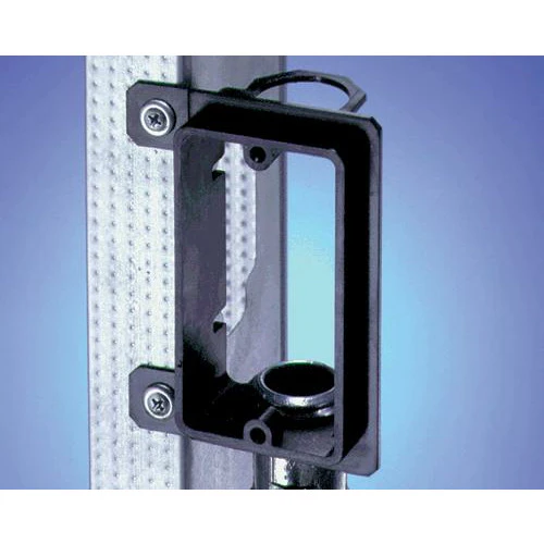 This Arlington Industries LVMB1 1-Gang Low Voltage Mounting Bracket is made of non-conductive smooth plastic to prevent cable damages and helps to install wiring without an electrical box which and for new construction. Mounts vertical on wood or metal studs. Non-metallic, single gang.