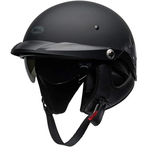 Looks can be deceiving. At first glance, our Pit Boss may look like many other half helmets in the cruiser category. Scratch the surface, though, and you’ll discover quality that sets it above the competition: A lightweight TriMatrix (carbon/Kevlar/fiberglass composite) shell, an innovative Speed Dial fit system that prevents the “lift and slippage” plaguing most other half-helmets, a drop-down internal shield in Dark Smoke that provides on the fly protection from the sun, and a removable neck curtain offering cold weather protection and speaker pockets for a convenient way to add an audio enhancement. Snug the Pit Boss onto your head and thumb the starter button – one ride will confirm the Pit Boss as the King of the Road.